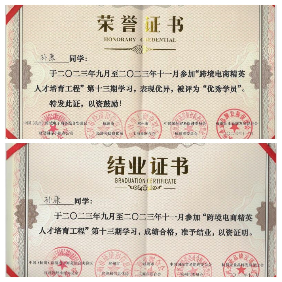 Sep.- Nov., 2023 GRADUATION CERTIFICATE & HONORARY CREDENTIAL¡ÊCross Border e-Commerce Elite Talent Cultivation Project¡Ë