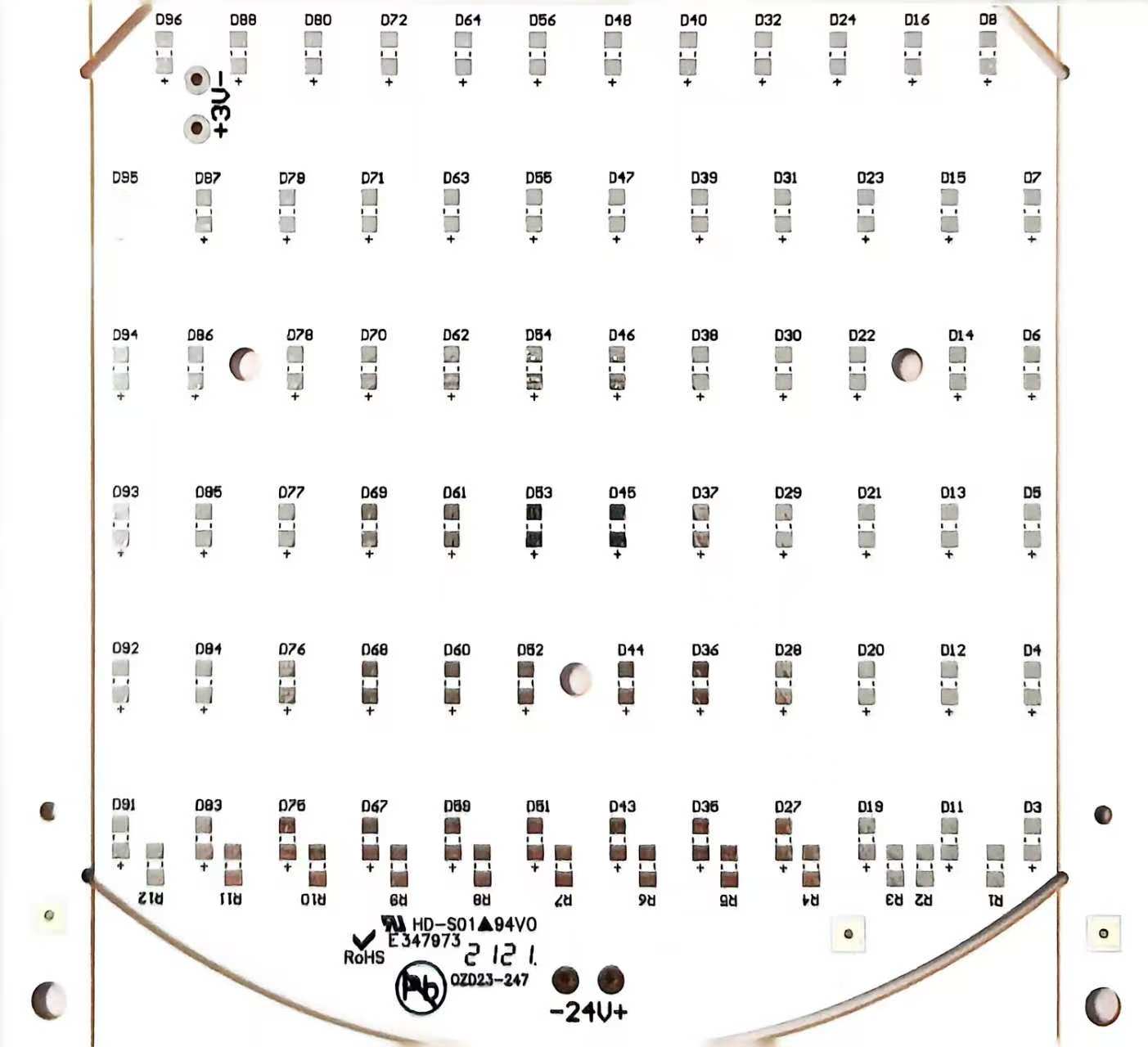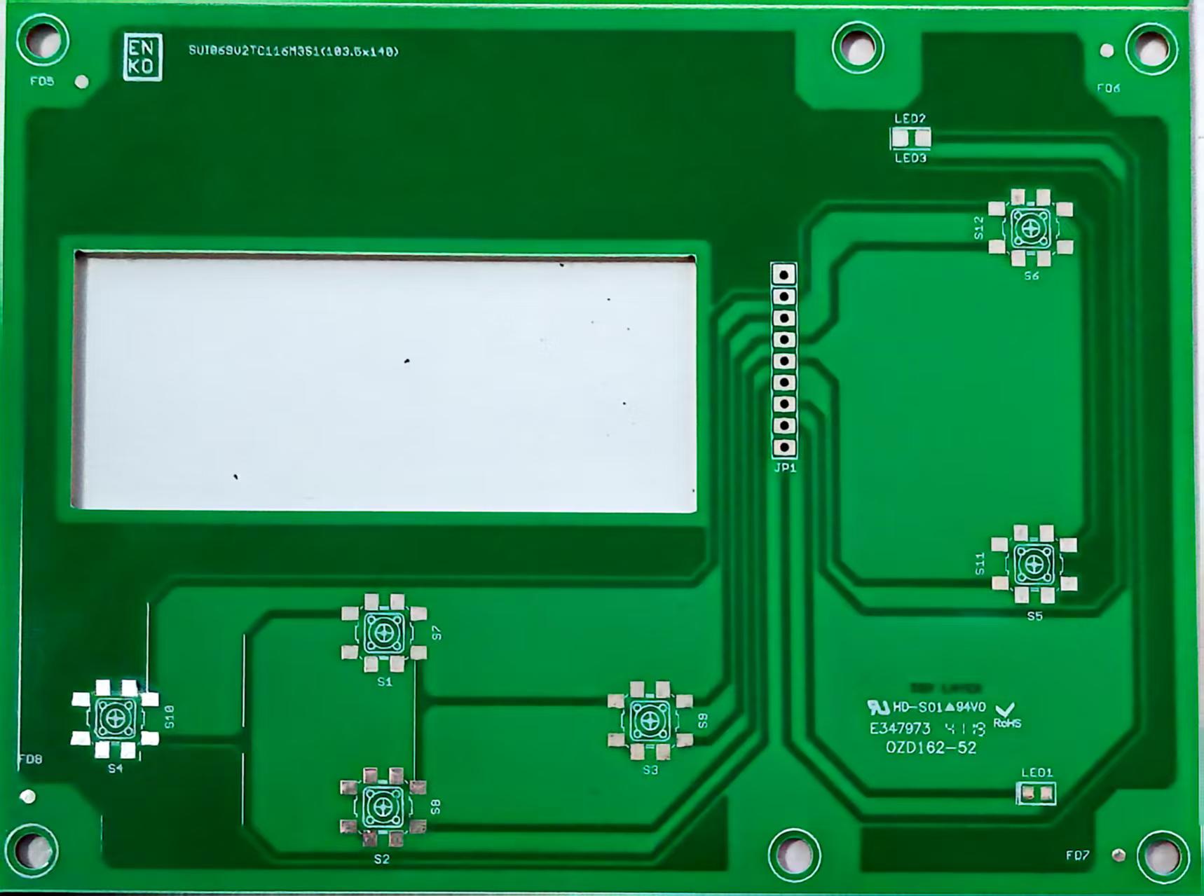 单层布线设计,制造工艺成熟稳定,生产过程易于控制,良率高。 材料用量少,工艺流程简单,生产成本低,特别适合大批量生产应用。 焊接点一目了然,维修和检测方便快捷,产品使用寿命长,可靠性高。 适用于低密度、低复杂度电路设计,是入门级电子产品的最佳选择。 纸基/环氧玻璃布 UL94 V-0/V-1/V-2 0.8mm - 3.2mm Computer Peripheral、Telecom